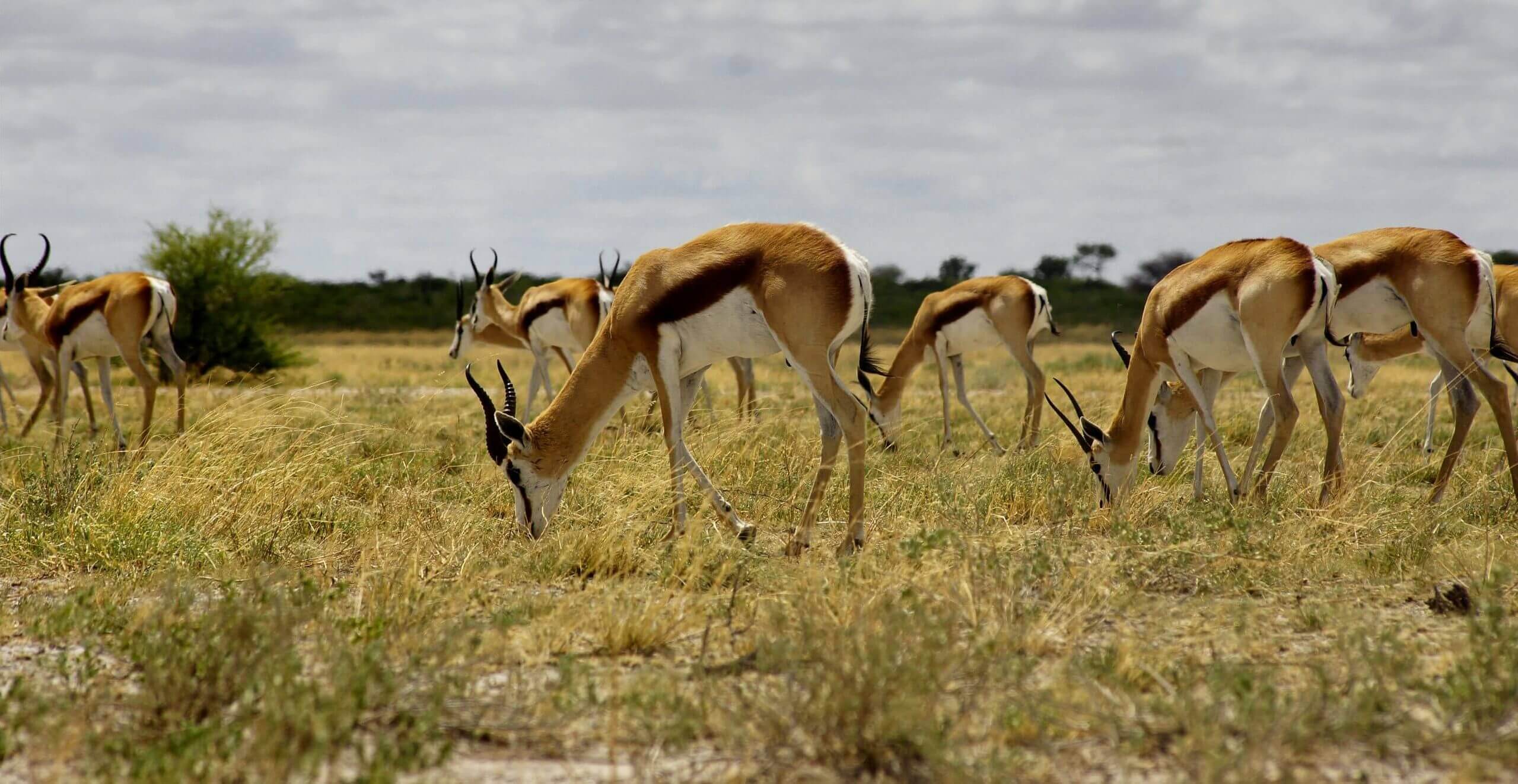 Andere dieren die je hier tegenkomt zijn gnoes, springbokken, stekelvarkens en struisvogels. Sommige van de gebieden in de Kalahari zijn seizoensgebonden wetlands, zoals de Makgadikgadi pan. Dit gebied herbergt in het regenseizoen tienduizenden flamingo’s.