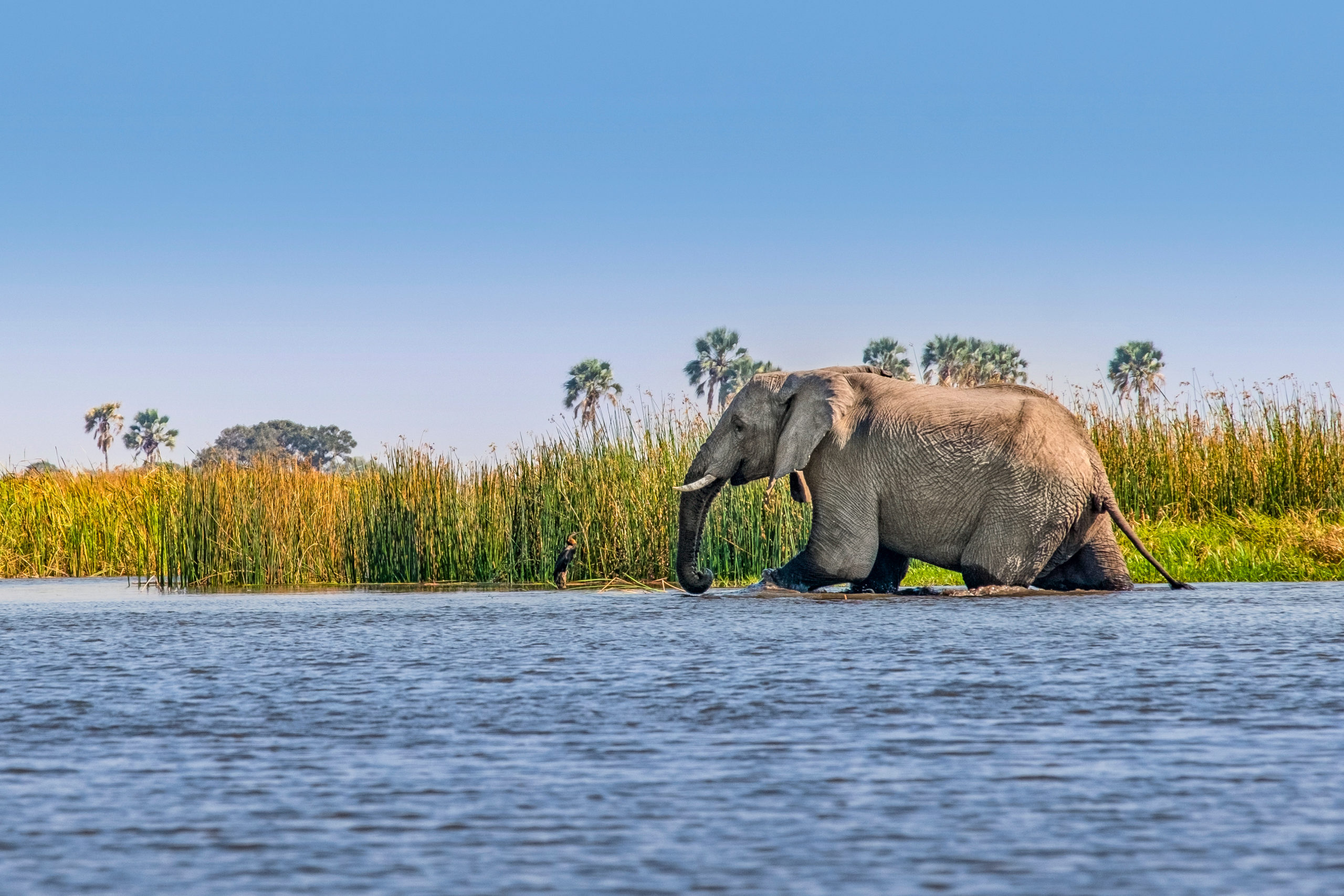 Dit gedeelte van Botswana staat namelijk bekend om zijn uitbundige wildleven. Aan het eind van de middag maak je een bootcruise op de Chobe Rivier. Mochten er nog foto’s ontbreken van nijlpaarden in het water, krokodillen op de oever of olifanten die zichzelf trakteren op een koele douche, dan kun je die alsnog maken. Let ook op de prachtige watervogels die je ziet.