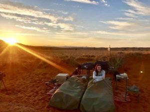 Haal je camera maar tevoorschijn! Kort voor zonsondergang creëren de schaduwen op de duinen een steeds veranderend palet van kleuren. Na een sundowner geniet je van een heerlijk diner en kruip je weer in je bedje onder de sterren.