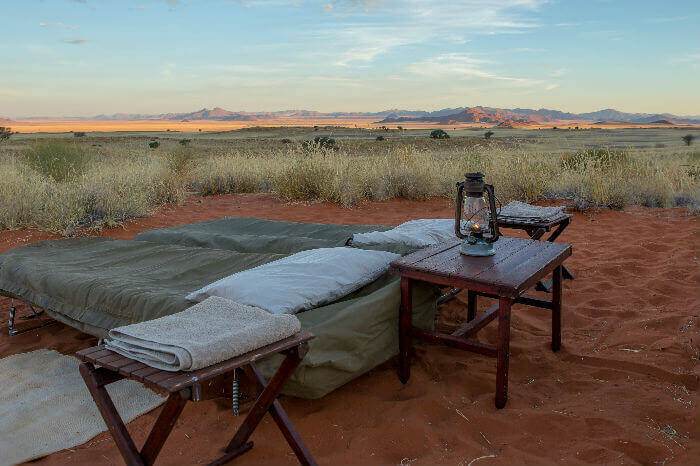 Vraag aan je gids of hij je wat kan leren over de melkweg en het imposante sterrenstelsel die je zult zien. Nu zal je begrijpen waarom het NamibRand Nature Reserve een van de weinige “International Dark Sky Reserves” in de wereld is. Miljoenen sterren fonkelen als diamantjes boven jouw opgedekte bedje. Geniet van de stilte en luister naar de geluiden van de nacht.