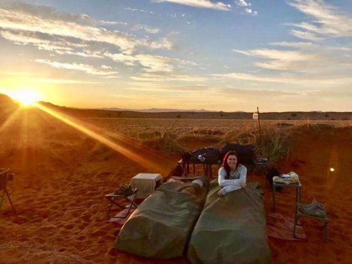 Haal je camera maar tevoorschijn! Kort voor zonsondergang creëren de schaduwen op de duinen een steeds veranderend palet van kleuren. Na een sundowner geniet je van een heerlijk diner en kruip je weer in je bedje onder de sterren.