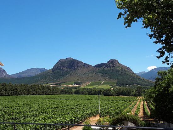 Het uitzicht op het majestueuze Constantia gebergte is spectaculair. De reis naar het landgoed Buitenverwachting is een ervaring op zich, aangezien de weg door uitgestrekte wijngaarden gaat waar paarden rond draven terwijl de koeien rustig grazen.