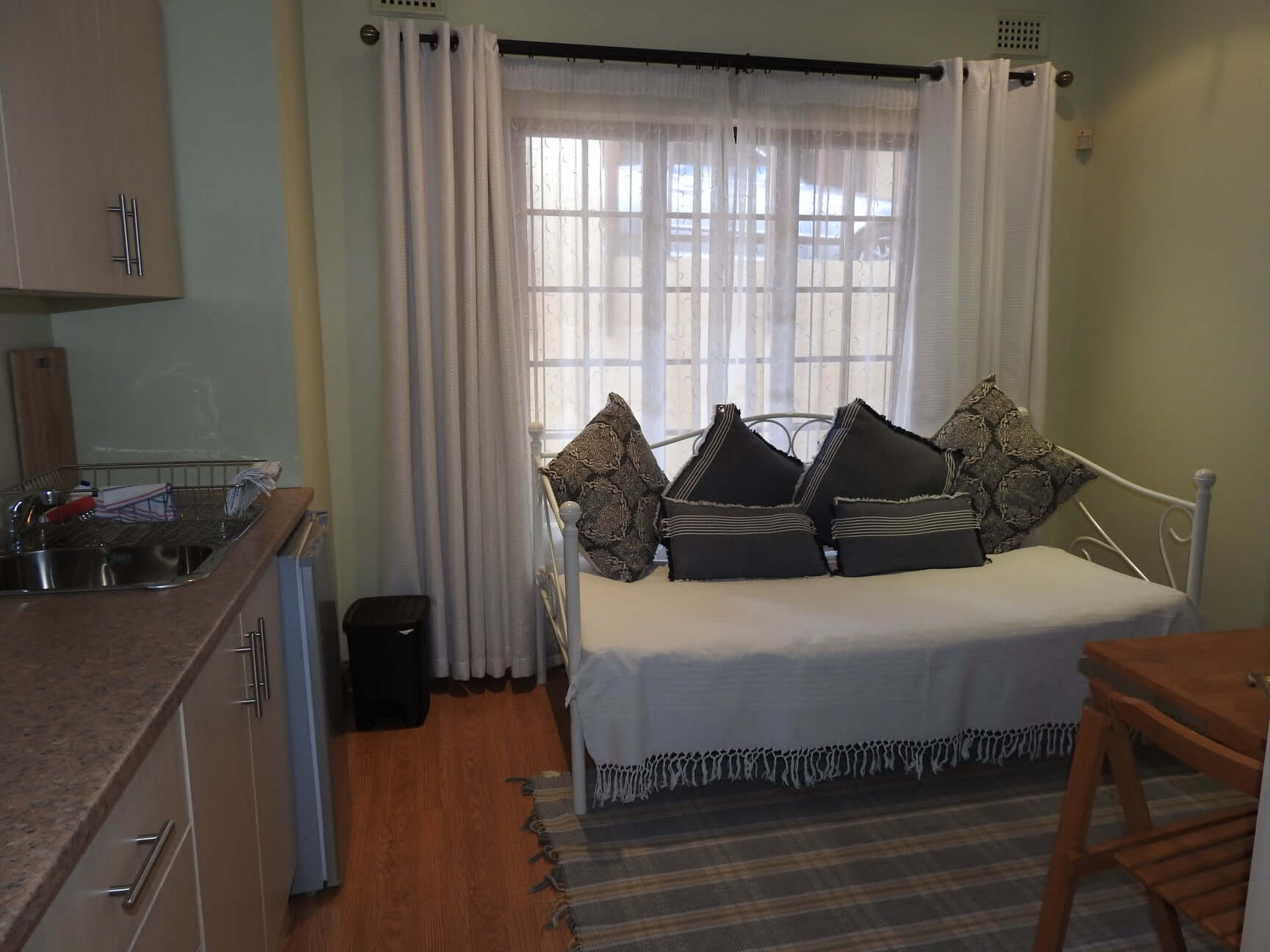 Alle kamers zijn ingericht in lichte kleuren en hebben een eigen patio. Fijne extra’s als gratis koekjes en wifi maken je verblijf compleet.