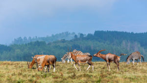 De graslanden zijn een thuis voor onder andere buffels, giraffen en verschillende antilopes. Er zijn hier geen roofdieren die voor mensen gevaarlijk zijn dus je kunt met een gerust hart rondfietsen. Zebra’s en wrattenzwijntjes leven hier in grote groepen en die kom je dan ook zeker tegen!