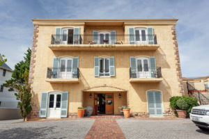 Het is gebouwd in een Provençaalse stijl met binnentuinen vol met bloemen en stenen terrassen. De kamers zijn comfortabel en licht en de service is uitmuntend.