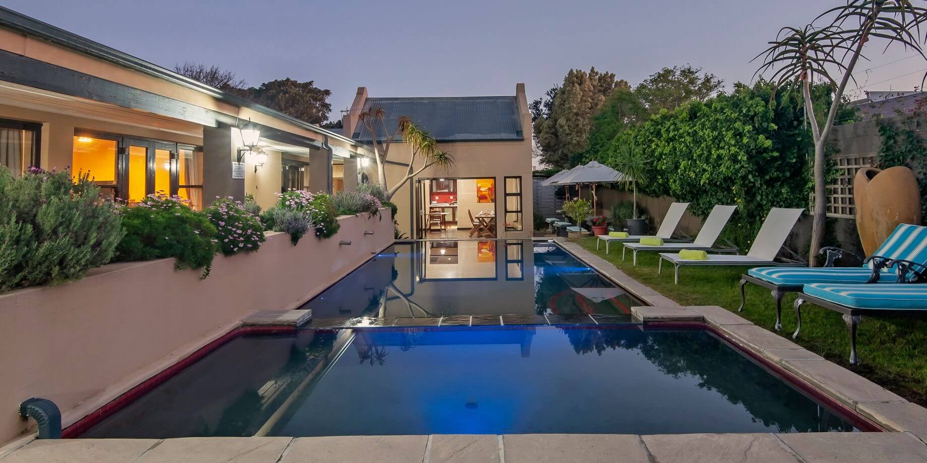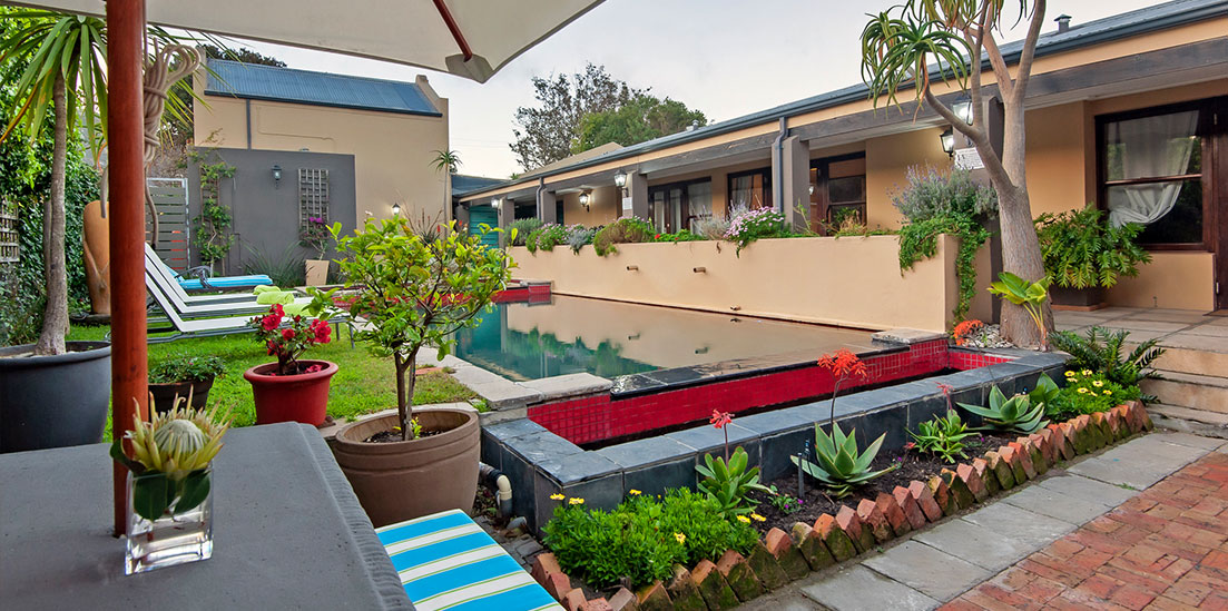 In het centrum van Hermanus ligt dit knusse bed & breakfast. De kamers kijken uit op de tuin met een zoutwaterzwembad.