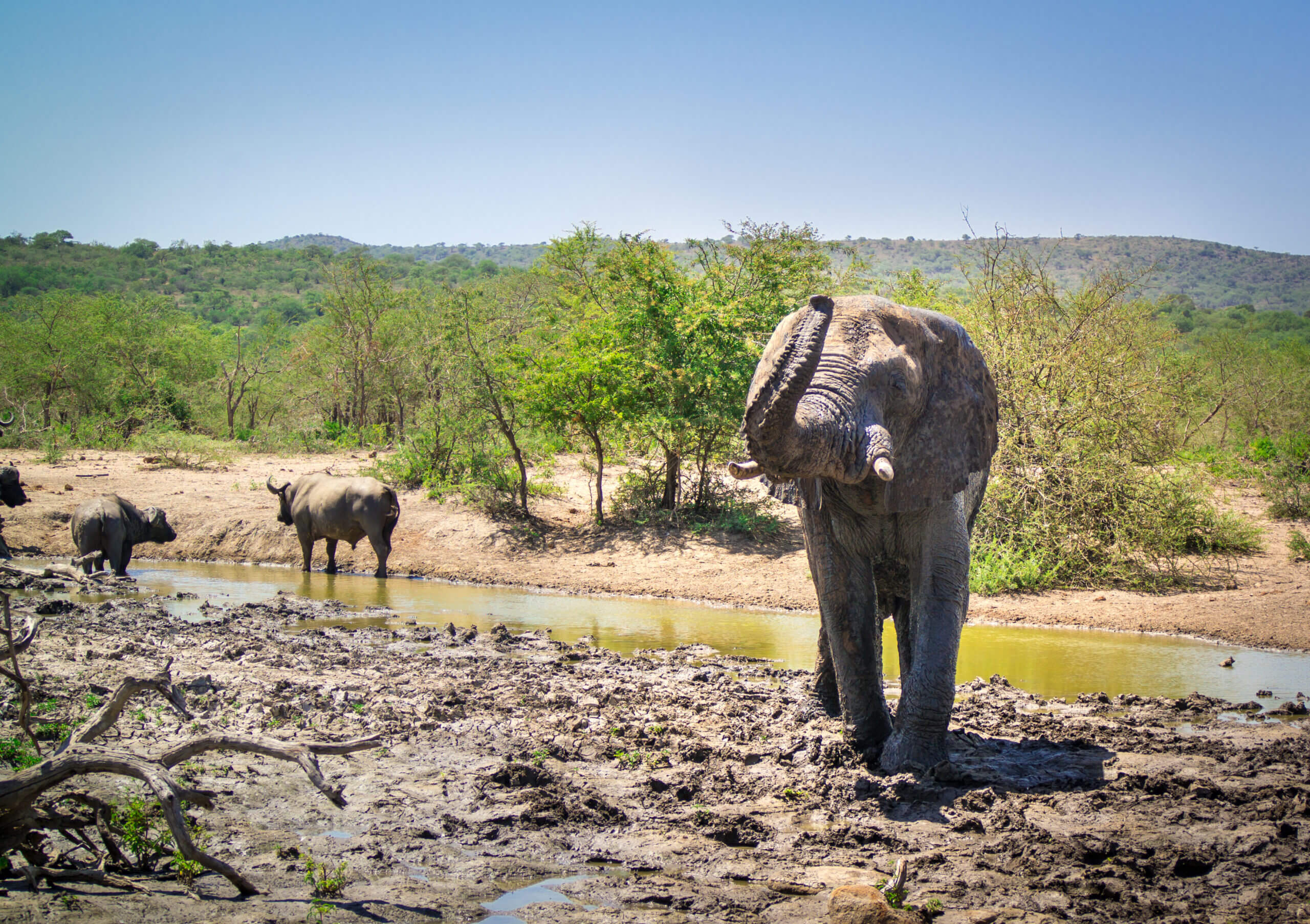 Een spectaculaire safari in het Hluhluwe big five game drive park. Je gaat in een safariwagen met een gids op zoek naar de big five – olifanten, buffels, luipaarden, neushoorns en leeuwen.