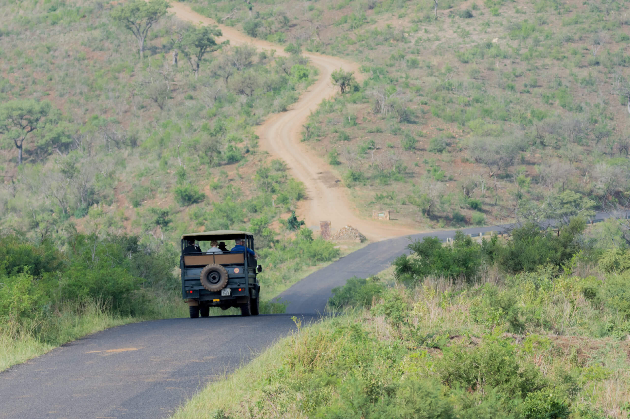 Met de gids stap je in een open safarivoertuig. Je zit wat hoger boven de grond en dat is fijn, zo kun je over de struiken heen kijken. De gids houdt de omgeving goed in de gaten en wijst je op de dieren en planten die je onderweg tegenkomt. Kijk zelf ook goed rond, met een beetje oefening spot je zelf de dieren!