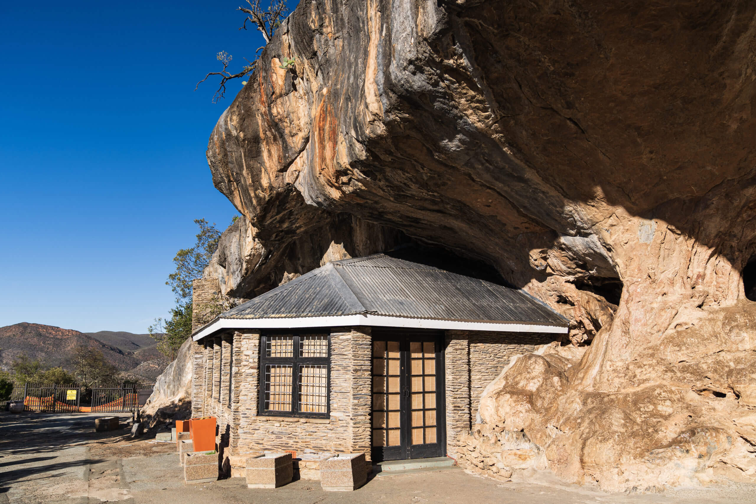 Het hotel ligt aan de voet van de Swartberg op de boerderij van ‘Voorbedacht’. Vanaf de veranda van het boerenhuis heb je schitterend uitzicht over de bergen.