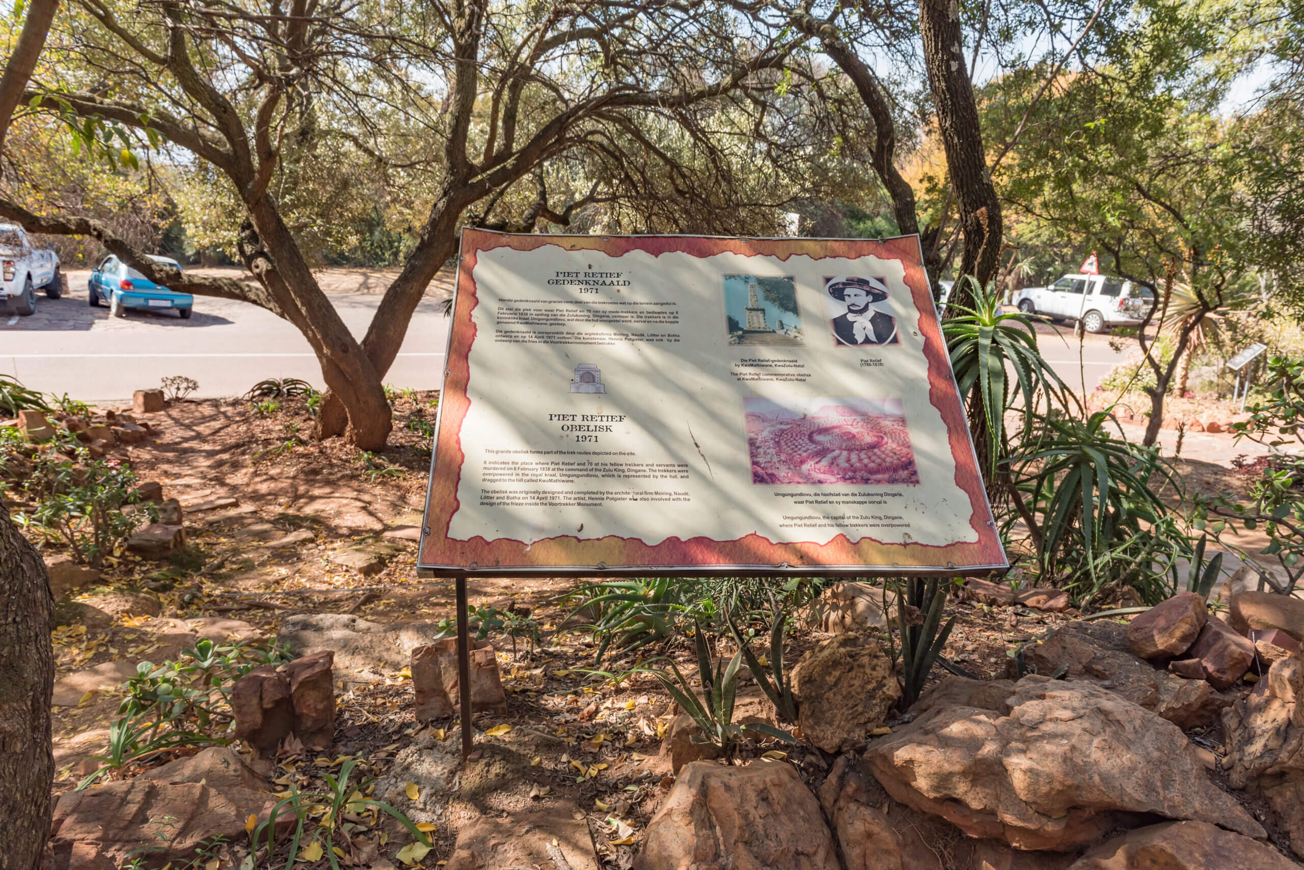 Toen Piet Retief en zijn volgelingen hier neerstreken ging dat niet zonder slag of stoot. Hij moest onderhandelen met de Zulu koning Dingane over het gebruik van de grond. Door onduidelijkheid in de vertaling tussen Retief en de koning ontstond er verwarring. De Zulu koning begreep dat Retief het gebied in eigendom wilde hebben. Dat wilde de koning niet en hij stuurde zijn strijders op de groep boeren af. Retief overleefde die aanval niet.